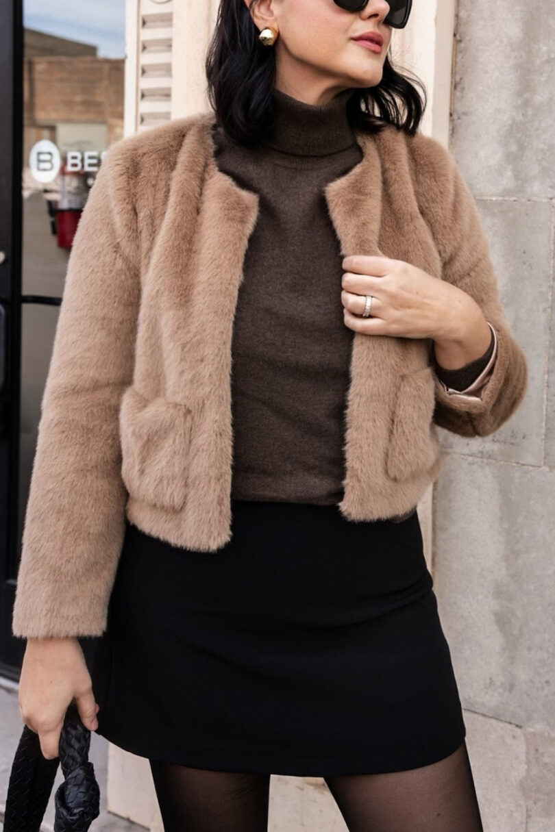 And then I tossed a faux fur jacket on just because I could. I’m lowkey obsessed with this jacket right now so any time there’s a slight chill in the air I reach for it. It’s on sale right now too! I have the medium, but could have sized up to a large for some extra wiggle room. Find it here.